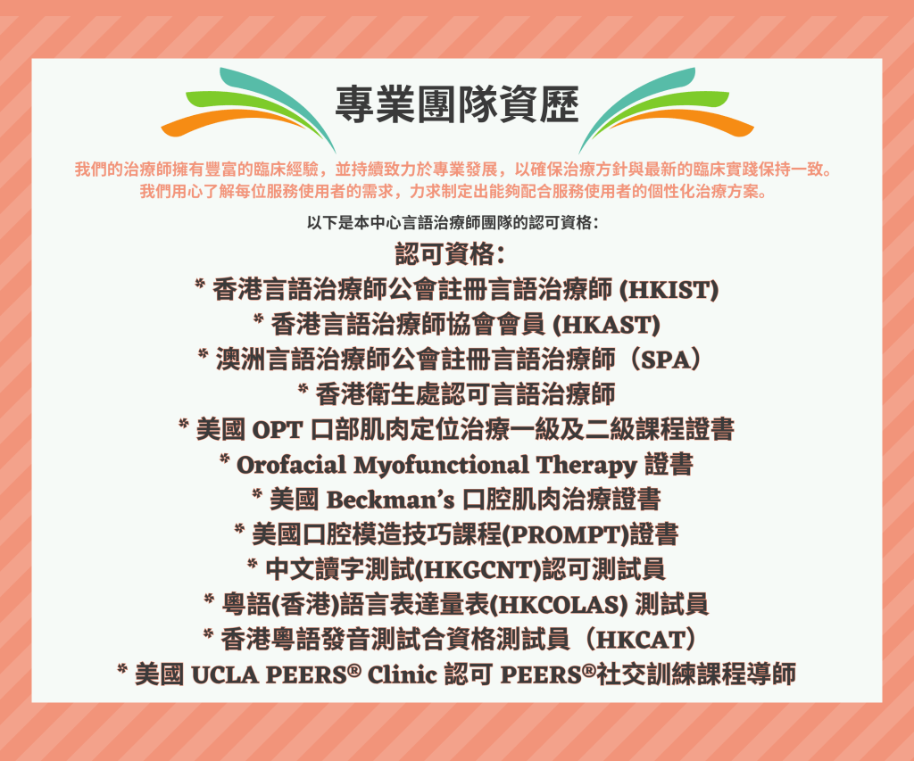 * 香港言語治療師協會會員 (HKAST)